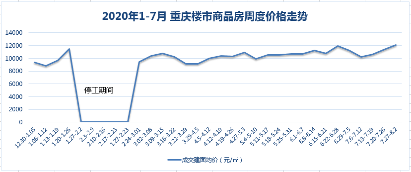 今年第一周到上一周,27周時(shí)間里,除去受疫情影響停工的2月份,商品房周度價(jià)格總體保持了穩中微漲的態(tài)勢,周度復合上漲率約0.98%。